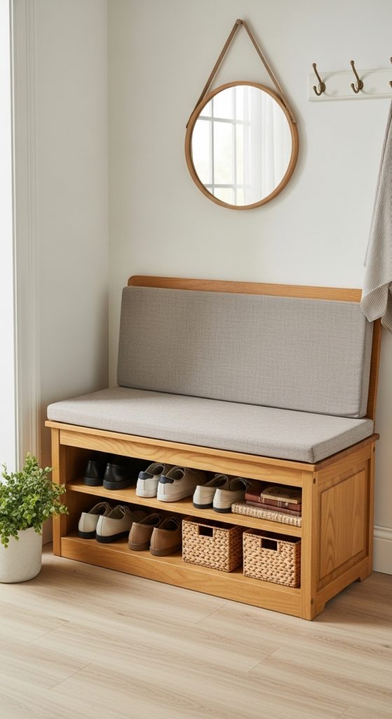 Furniture that doubles as storage is essential in small homes. A DIY storage bench gives you seating, hidden storage, and a stylish accent piece all in one.