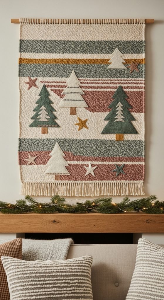 Add depth to your soft Christmas decor with textured wall hangings. Consider materials like felt, wool, macramé, or woven fabric in muted tones. You can find or create wall hangings featuring Christmas trees, stars, snowflakes, or abstract winter designs.