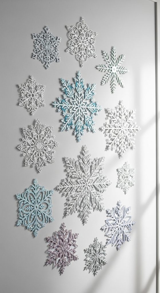 Styling Tip: Hang snowflake prints near a window or over a sofa. The soft designs reflect light beautifully and create a winter wonderland feeling without overwhelming your space.
