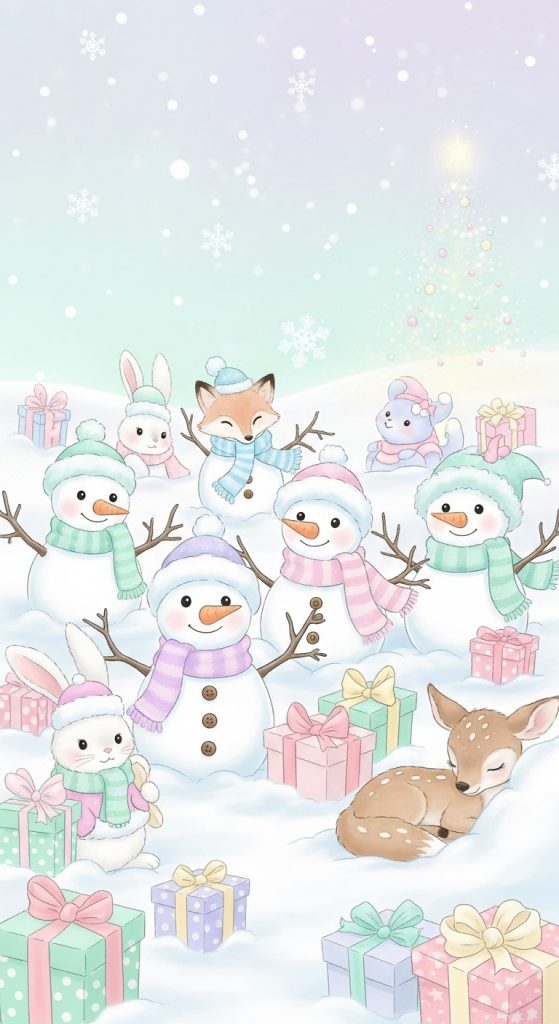 These colors create a serene, cozy vibe while adding a hint of playfulness. Pastel illustrations are ideal for children’s rooms, nurseries, or even living rooms where a soft, dreamy holiday theme is desired.