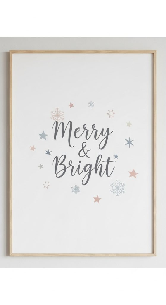 Typography wall art is a modern and minimal approach to Christmas decor. Choose phrases like “Merry & Bright,” “Joy to the World,” or “Peace and Love” written in gentle script fonts with muted colors.