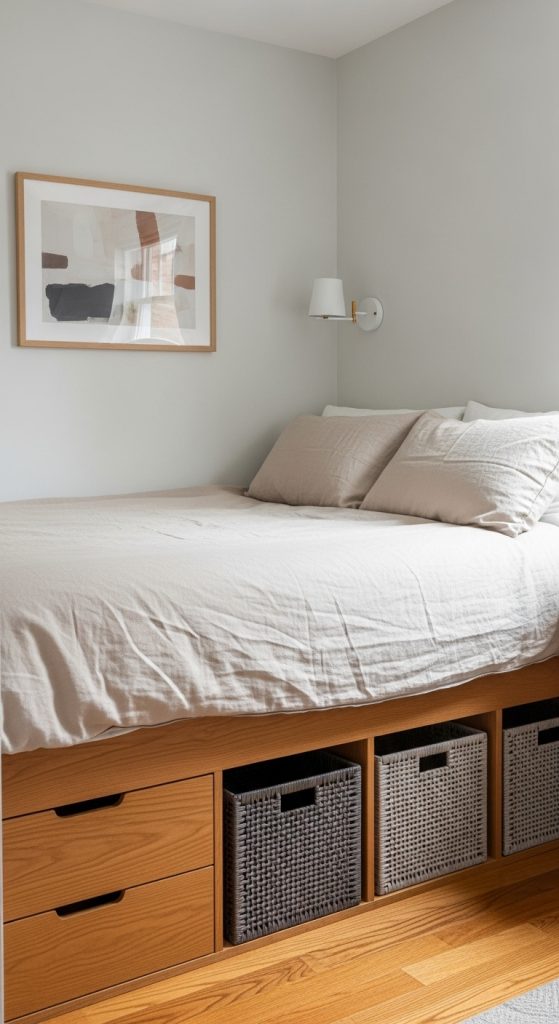 Your bed takes up a lot of space, but the area underneath it can be turned into valuable storage. Use rolling bins, drawers, or vacuum-sealed bags to store items you don’t need every day, such as seasonal clothing, extra linens, or shoes.