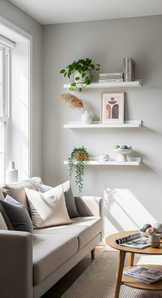 To create a cohesive look, choose shelves that match your wall color or use wooden textures to add warmth. For small apartments, combining open shelving with closed cabinets can help maintain a balance between display and concealed storage.