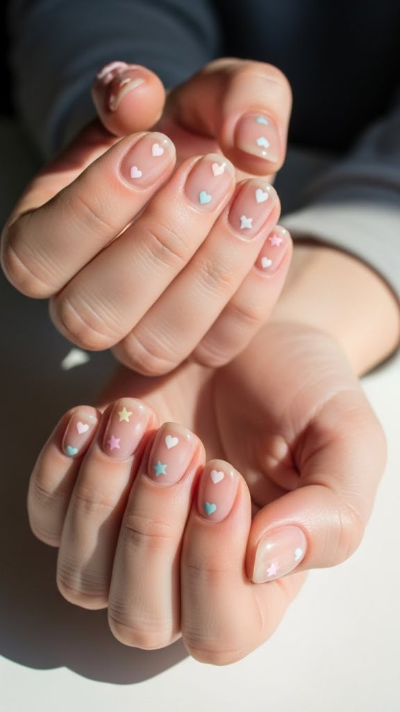 These designs are often done on one or two accent nails while the rest remain neutral. Soft colors and clean outlines keep the design neat and school appropriate.