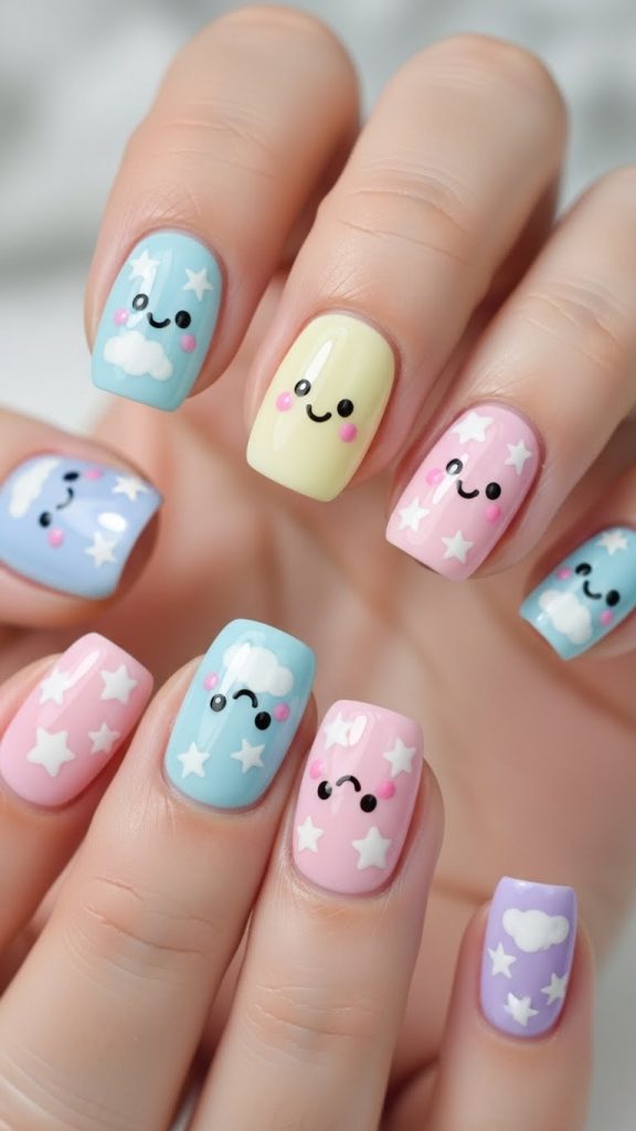 Many teens love nail designs inspired by cartoons, cute characters, or playful illustrations. Simple smiley faces, stars, clouds, or popular character themes add a fun and youthful vibe.