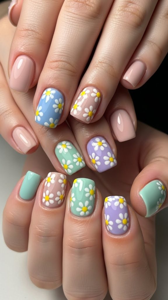 Floral nail designs are always in style and perfect for teens. Small daisies, tiny roses, or simple flower patterns add a soft and cheerful touch to nails. Floral designs often use light backgrounds like nude, white, or pastel shades.