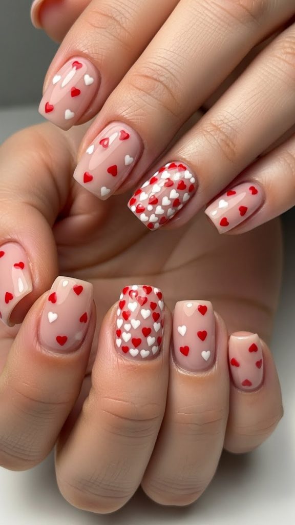 Heart nail designs are sweet, playful, and perfect for teens. These designs often use soft pinks, reds, whites, or clear bases with small heart patterns. Hearts can be painted on one or two accent nails while the rest remain solid colored.