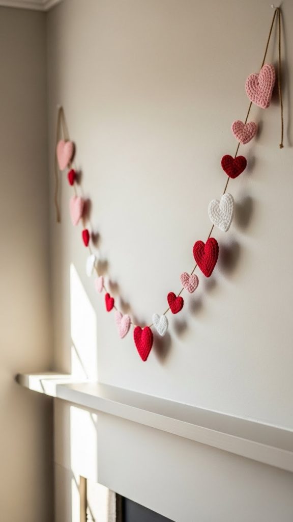 A crochet heart garland is a beautiful way to decorate your home for Valentines Day. This project involves crocheting multiple hearts and joining them together with a chain or string.