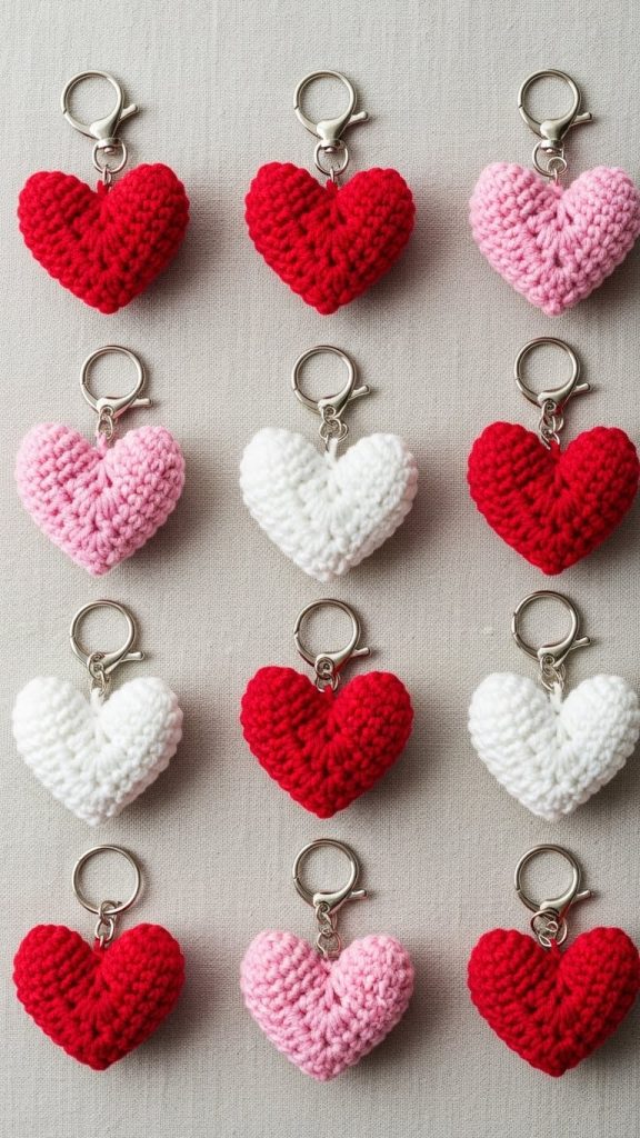 Crochet heart keychains are especially popular for classroom gifts party favors or coworker exchanges.