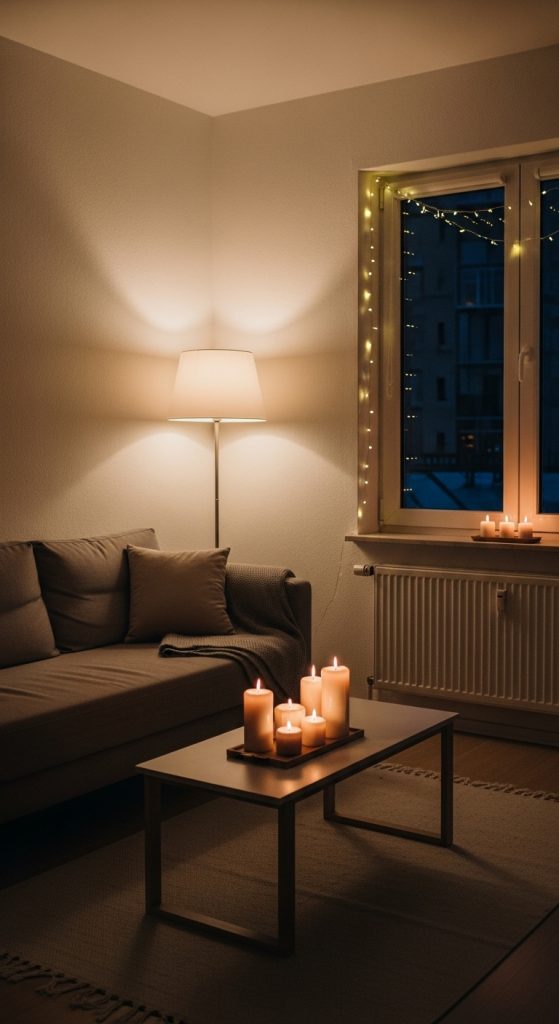 Imagine curling up on your sofa in the evening, surrounded by the soft glow of lamps and candles. That small change alone can transform your apartment into a warm retreat.