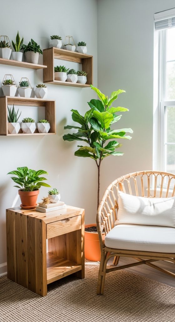 For those with limited natural light, low-maintenance plants like snake plants or pothos are perfect options. If caring for real plants feels challenging, high-quality faux plants can still bring the same visual warmth.