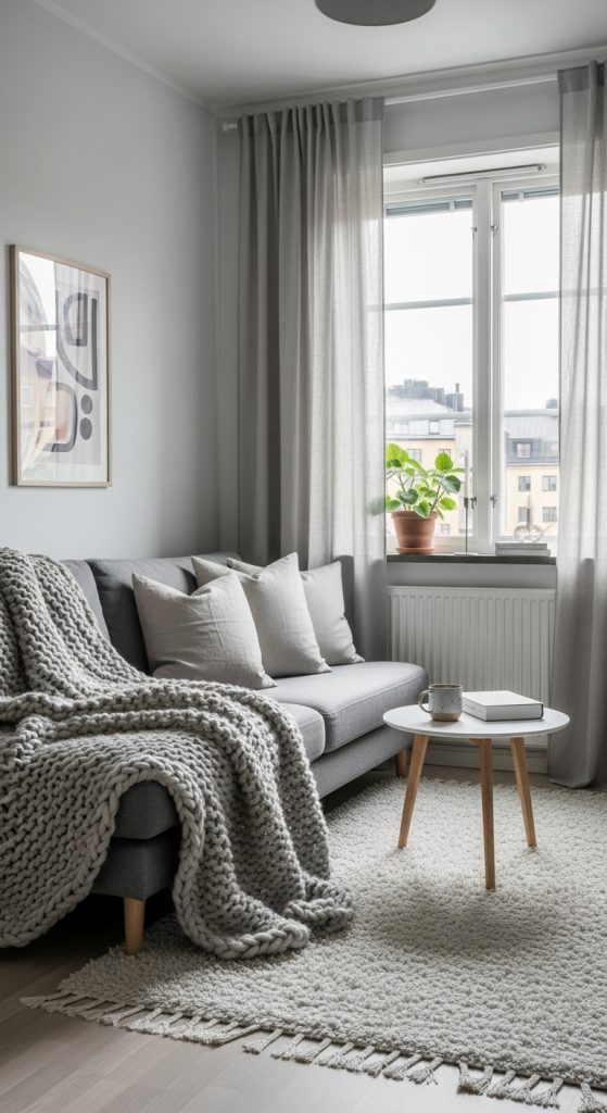 Nothing feels cozier than sinking into a sofa with soft blankets and cushions. Textiles play a major role in bringing warmth to an apartment interior. Incorporating plush throws, layered rugs, and decorative pillows instantly softens the space and makes it feel more welcoming.