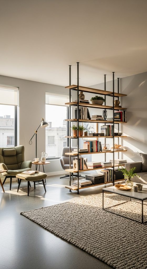 Rugs can help visually separate different zones without the need for physical partitions. A cozy reading nook with an armchair and floor lamp creates a personal retreat. Folding screens or bookshelves can also serve as stylish dividers while adding functionality.