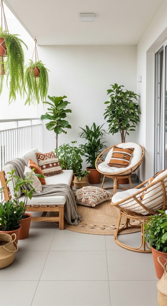 - Use Cozy Furniture: Choose weather-resistant chairs, rattan furniture, or a small coffee table for a cozy corner.