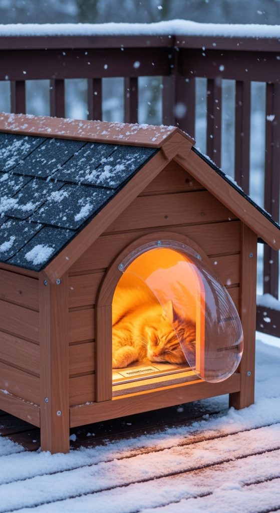 In very cold regions, a heated outdoor cat house can be a lifesaver for your pet. This design involves creating a sturdy wooden or plastic structure with insulation and then adding a safe heating pad designed for pets.