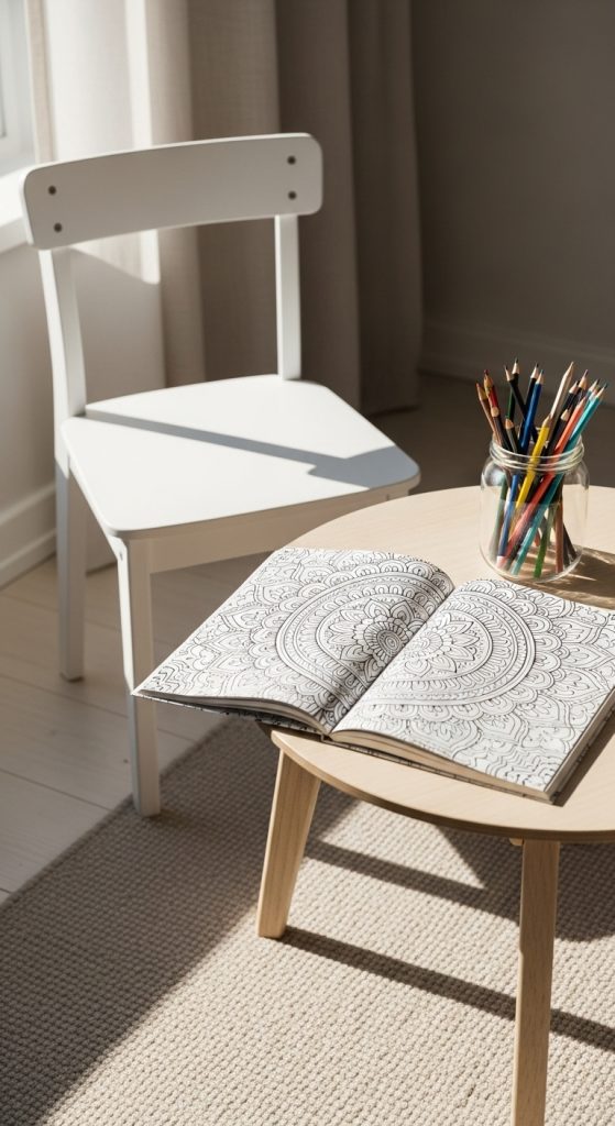 This space also serves as a mini escape from digital screens and constant noise. Spending even 15 minutes a day coloring in your cozy corner can help reset your mind and provide a sense of accomplishment.