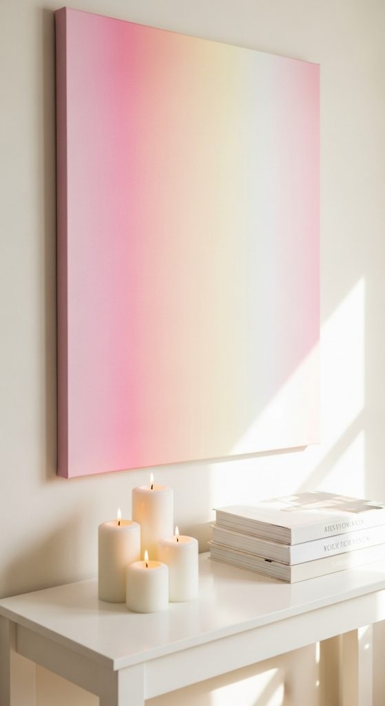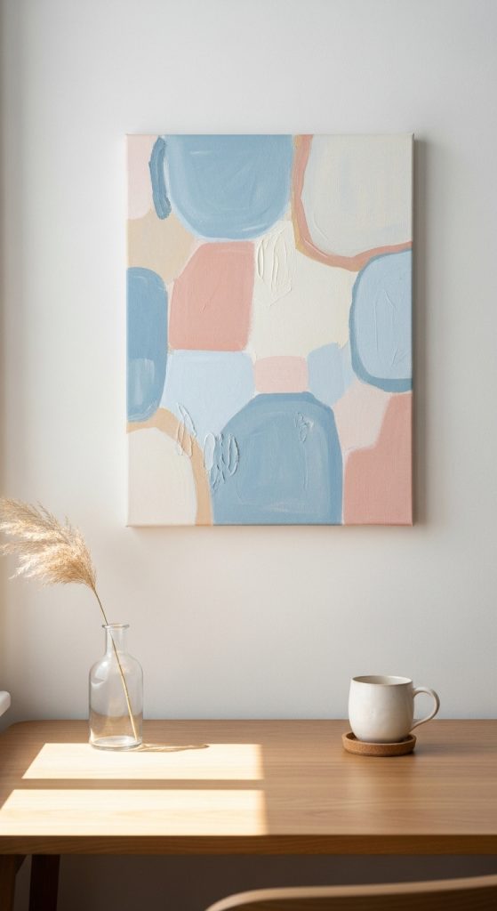 Add pastel cushions, vases, or rugs that tie in with your wall art to complete the aesthetic.