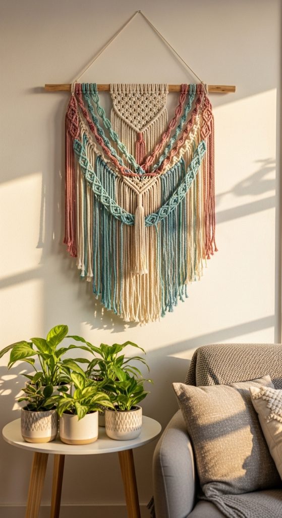 Macrame wall hangings have become a favorite for boho-inspired spaces, and pastel threads can make them even more unique and calming.