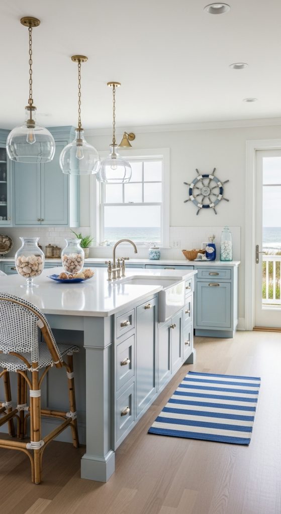 A coastal-inspired kitchen makes your space feel bright and refreshing. Even if you live far from the ocean, this style brings vacation vibes into your everyday life.
