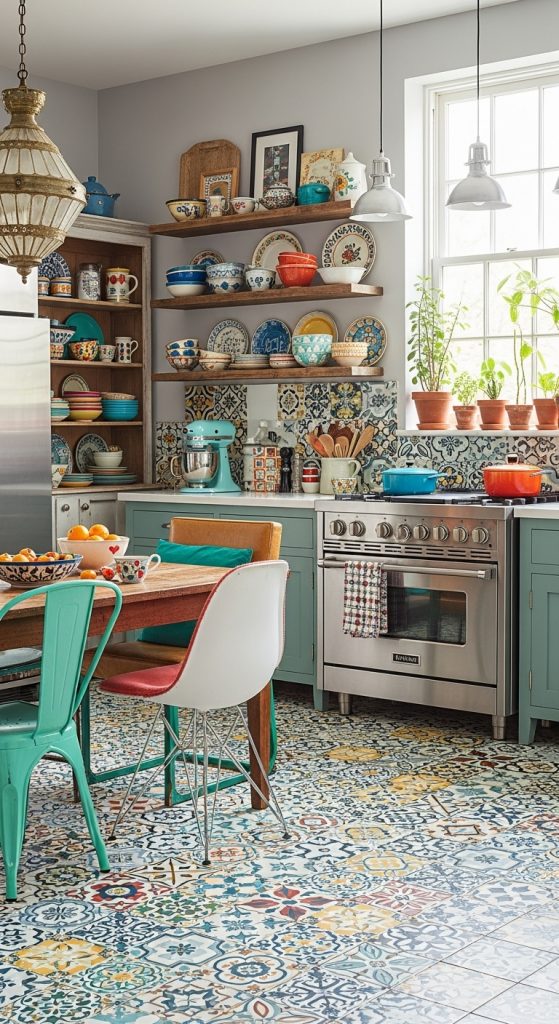 An eclectic kitchen feels creative and unique. It is perfect for those who love experimenting with design and want a kitchen that truly reflects their personality.