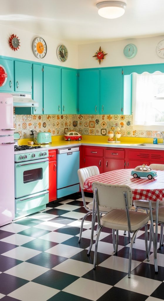 If you love a touch of nostalgia, a vintage retro kitchen is a fantastic choice. This style brings bold colors, patterns, and retro appliances into play.