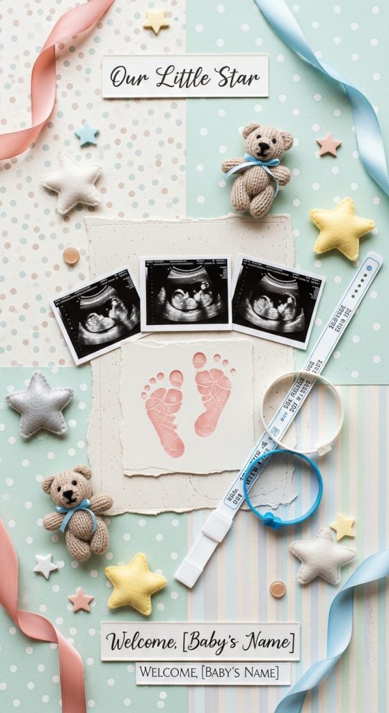 Use soft, pastel colors and playful embellishments like teddy bears, rattles, or stars. Journaling is also important here. Write short notes about your feelings when the baby was born, the first time you brought them home, or milestones you celebrated together.