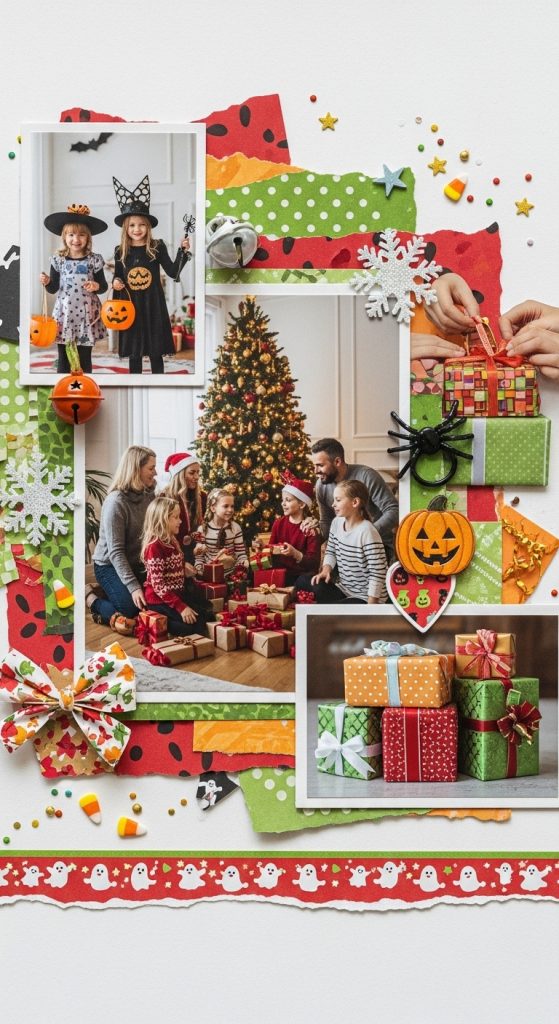 Use embellishments that match the holiday theme. Red and green for Christmas, orange and black for Halloween, or gold and bright colors for festive celebrations. Journaling about traditions, funny moments, or special meals can also bring your holiday scrapbook pages to life.