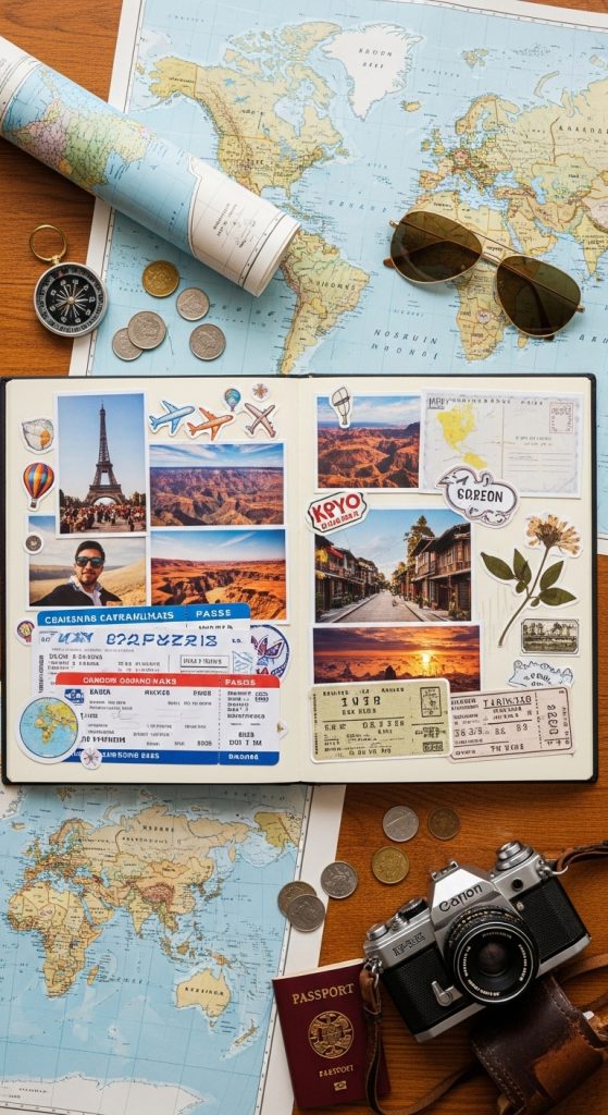 Start by printing your favorite travel photos and organizing them by destination or trip. Use maps, tickets, brochures, and postcards to create a visual story. You can also jot down journal entries about the experiences you had during your travels, such as local foods you tried, cultural events you attended, or special moments with friends and family.