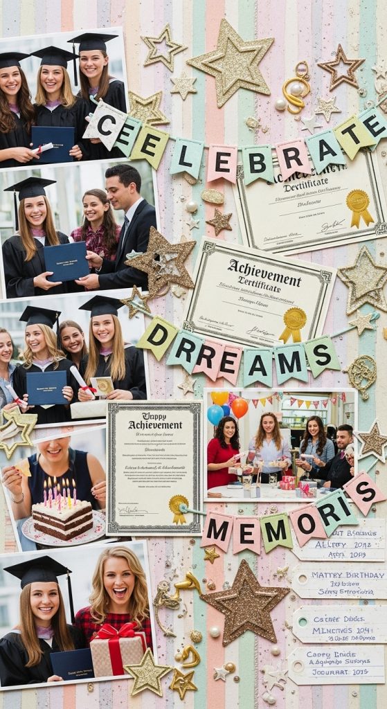 Use bold headings and celebratory embellishments such as stars, banners, or confetti patterns. Write about what each milestone meant to you and how it shaped your journey.