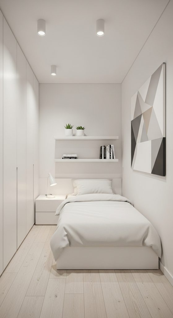 - Decor: Minimalist artwork, geometric wall decals, and simple bedding.
