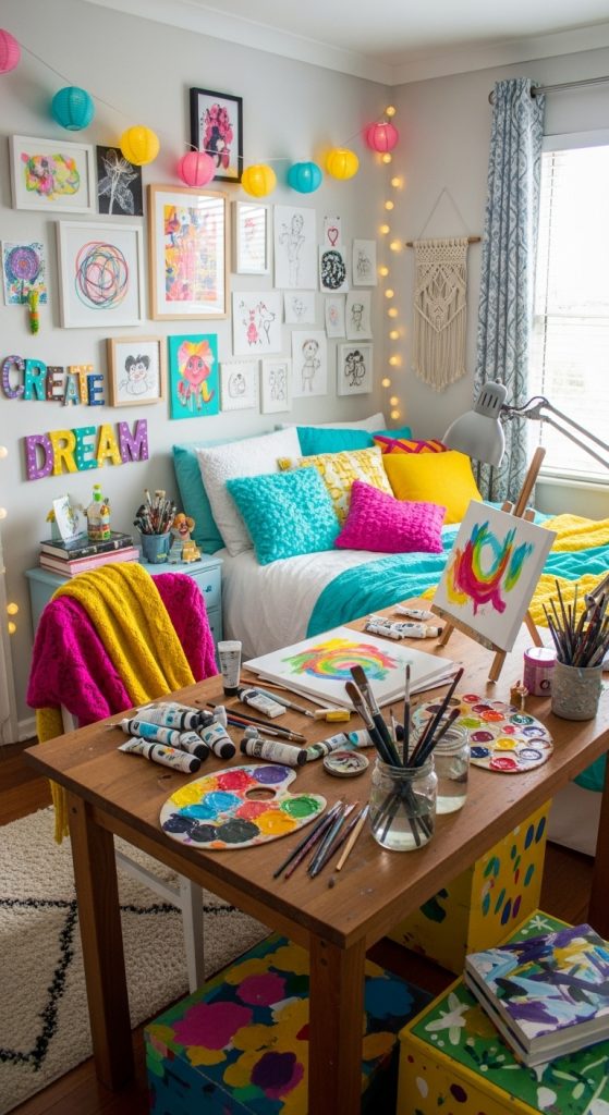 For a teen who loves painting, drawing, or crafting, an artistic bedroom can spark creativity every day.