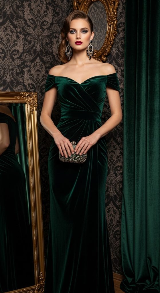 Off-shoulder dresses have remained a favorite among women for their romantic and feminine charm. This style highlights your collarbones and shoulders, adding a graceful touch to your party look. Choose an off-shoulder dress in materials like satin or velvet for an elevated appearance. Whether it is a fitted silhouette or a flowy maxi version, this dress works perfectly for semi-formal to formal gatherings. Pair it with chandelier earrings and open-toe heels for a balanced and stunning ensemble.